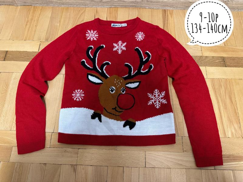 Кофтинка в новорічний принт з Оленем на вік 9-10 років, 134-140см. В ідеальному вигляді.Заміри при потребі надам. Дивіться інші мої оголошення.