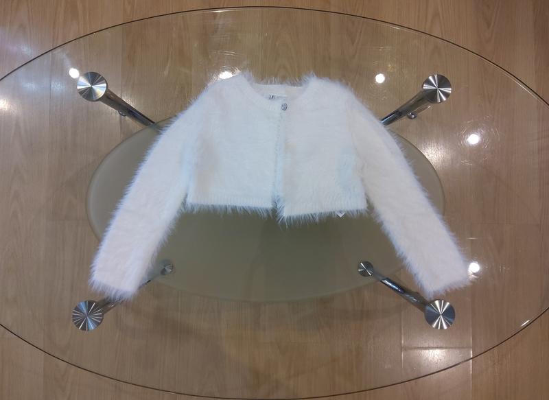 Пересылаю после оплаты на карту. Состояние новой, недостатков нет, возврат товара нет. Заміри на фото. Цвет молочный. Очень мягкая, нежная и приятная к телу кофточка-болеро под праздничное платье. На 2-4 года.