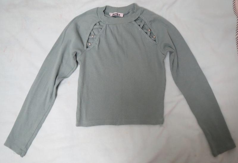 Кофта Моніка на дівчинку р.146 Заміри: довжина 41см ПОГ 33см рукав від горловини 58см Стан дуже хороший.