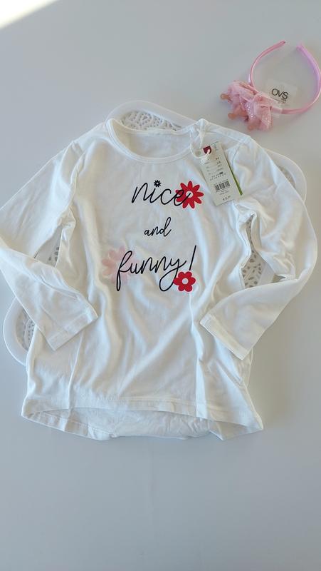 Лонгслів для дівчинки бренду Ovs Дуже приємний на дотик 🧶 Склад тканини : 96 % Бавовна, 4 % еластан ✅️Ріст 116 см Вік 5 - 6 років 🪈 Заміри : Довжина - 44 - 49 см Довжина рукава - 41 см Ширина під пашками - 32 см Ширина по плечах - 27 см 🏷 Ціна - 275 грн
