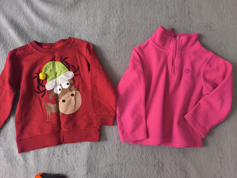 цена за оба. очень теплая розовая флиска 104 размера, мега удобная теплая и приятная на ощупь, красная с оленем также на флисе,98 размера, смотрите замеры на фото все есть. мягкие, без дефектов обе.