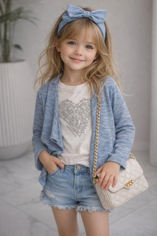 Ніжна блакитна кофтинка + футболка з блискучим сердечком 💫 Ідеально для прогулянок, садочка чи святкових виходів. ✨ Деталі: Вік: 5–6 років Стан: відмінний М’яка, приємна до тіла тканина Стильний, універсальний колір Легко поєднується з джинсами, спідничками, шортами 📸 Виглядає дуже стильно та охайно, як на фото 📦 Відправка Новою поштою / Укрпоштою 💬 Пишіть — з радістю відповім на запитання