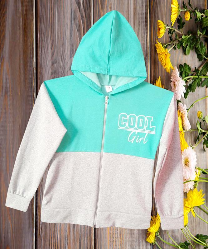 Кофта на блискавці для дівчинки. На рукавах манжет, має дві внутрішні кишені. Полотно-двонитка (95% бавовна, 5% еластан). На зріст 128р : напівобхват грудей 39см , довжина рукава від плеча 42 см , довжина по спинці 46см Доставка: Нова пошта, Meest, Укрпошта, Розетка. Доставка за Ваш рахунок.