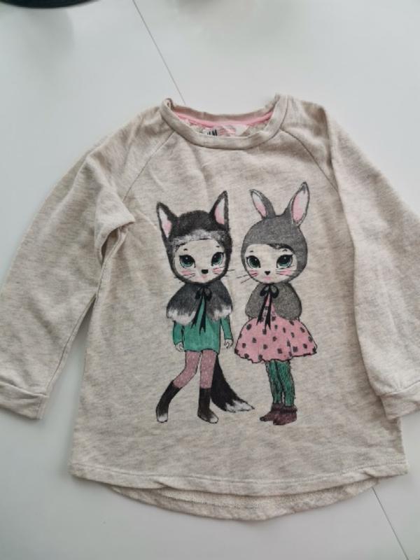 Тканина бавовна трикотаж 2х нитка. Недоліків немає. Річ своя не стокова від однієї дитини. Довжина спинки трошки подовжена,ніж попереду. Довжина 46 см. Напівоб'єм під піхвами 34 см. Довжина рукава від початку горловини 42 см.