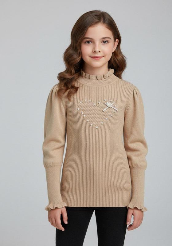 Дитячий светр для дівчинки в бежевому кольорі в розмірі 110-150 см (розміри уточнюйте)
