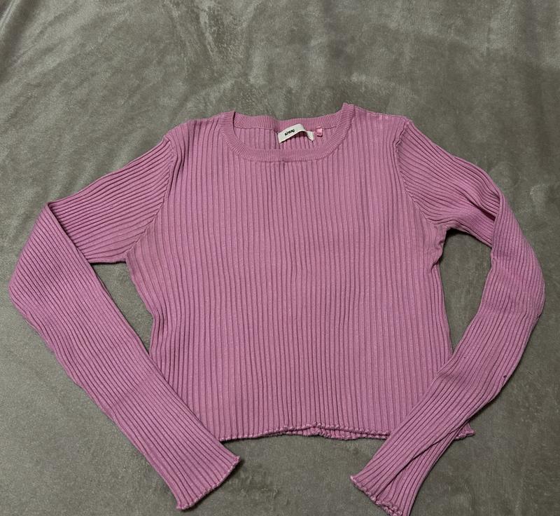 Рожева коротка кофта. Розмір Л, але тканина дуже добре тягнеться. Довжина від плечей 44 см, довжина рукава 60 см, напів обʼєм під руками 42см, напів обʼєм талії 40 см.