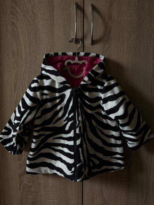 Дитяча флісова куртка (худі) з капюшоном — принт «Зебра», р. 98 підходить на 2-3 роки
