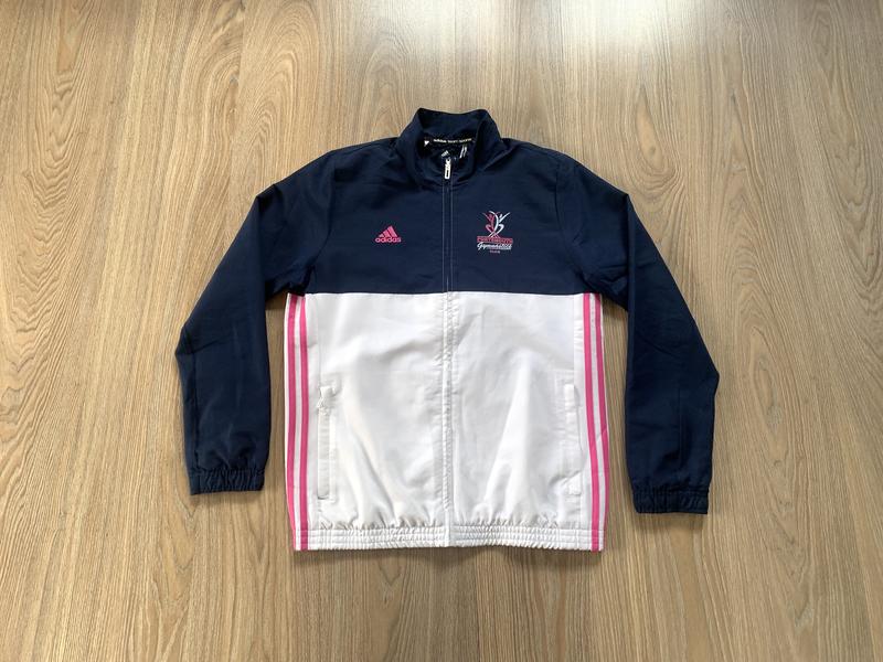 Підліткова спортивна кофта олімпійка Adidas Заміри: 1. Ширина в плечах: см 2. Напівобхват грудей: см 3. Напівобхват талії: см 4. Довжина: см 5. Довжина рукава: см