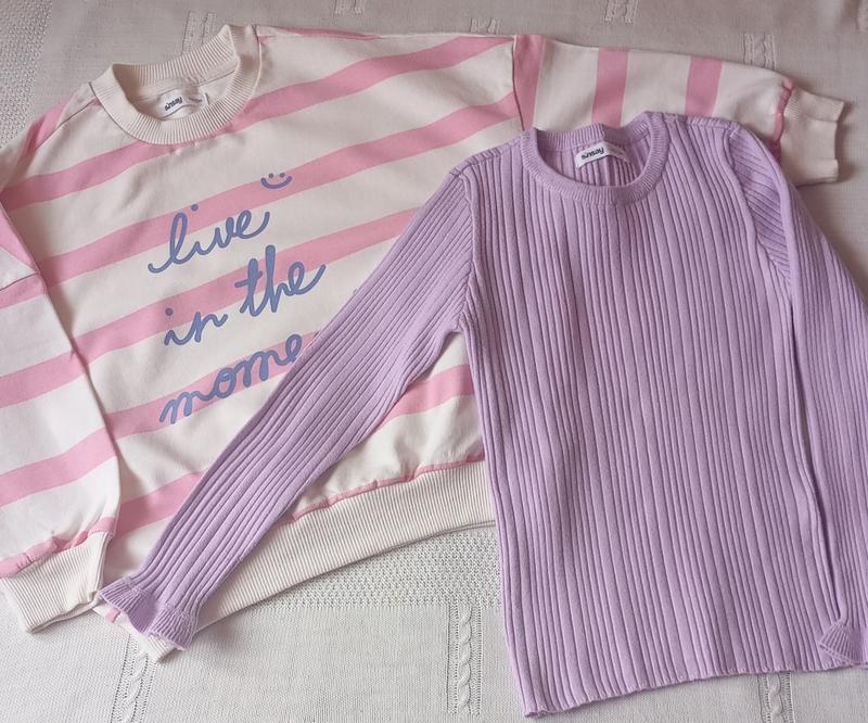 Молочний світшот, двохнитка, р 110, стан ідеальний. Лавандовий джемпер, добре тягнеться, стан близький до ідеального, р.110.