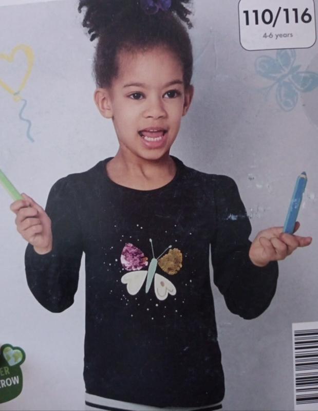 Дуже красивий лонгслів на дівчинку від lupilu з нової колекції.Виглядає дуже стильно ,рукавця ідуть на резиночках, метелик вишиті паетками , змінюють колір . кофтинка йде в упаковці можна презентувати на подарунок. Склад 100%хлопок. В наявності розмір 110/116. на 4-6років довжину 43 см ДПГ 31 см довжина рукава від плеча 39 см