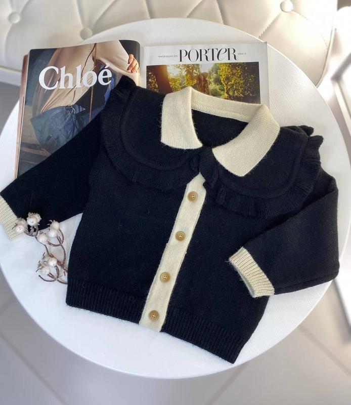 Кофта для дівчинки тепла на ґудзиках з коміром чорний 9070, kxndk, чорний, для дівчаток, о...