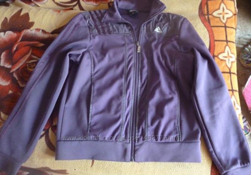 Характеристики товару: Тканина Синтетика Спортивна кофта.Колір бузковий.Практично нова.ПОГ 48см.довжина рукава 59см.ліна кофти 57см.