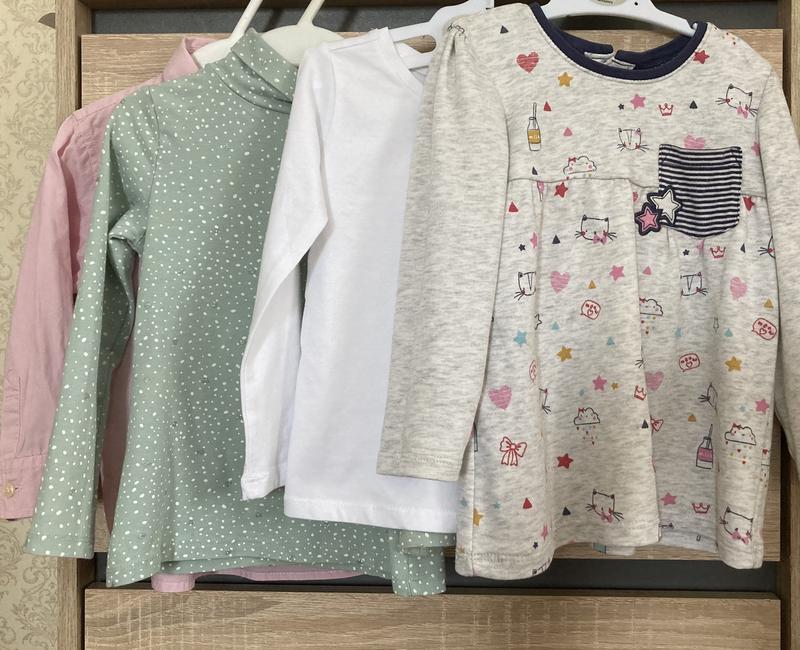 Туніка TU: довжина - 40, пог - 27, рукав - 33, в ідеальному стані. Реглан білий Cool Club: довжина - 36, пог -28, рукав - 34, НОВИЙ! Гольф H&M organic cotton: довжина - 37, пог - 27 (тягнеться), рукав - 34, в ідеальному стані. Сорочка рожева Next: довжина - 37, пог - 32, рукав - 31, в ідеальному стані. Ціна за набір!