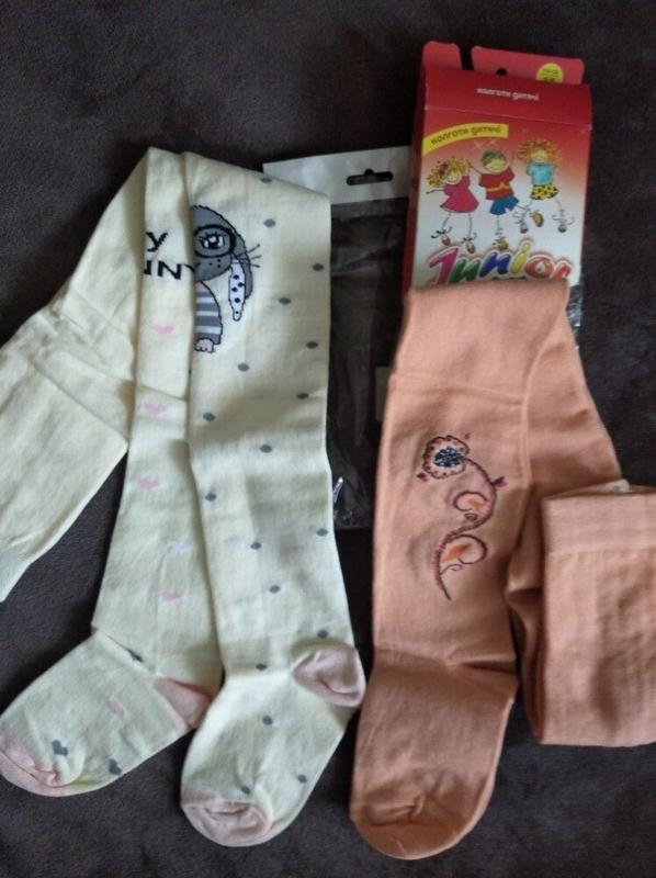 Якісні колготки дівчинці р. 116-122, Класик та Елегантс. Класик — персикові з квіткою, Елегантс — молочний із зайчиком.