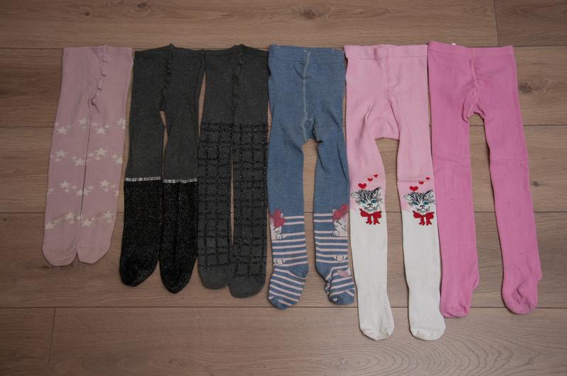 колготи гарної якості, хороших фірм, деякі куплені в Україні, деякі за кордоном на 3-5 років темні колготи з блискучою полоскою одягали 1 раз ціна 100 грн інші по 50 грн