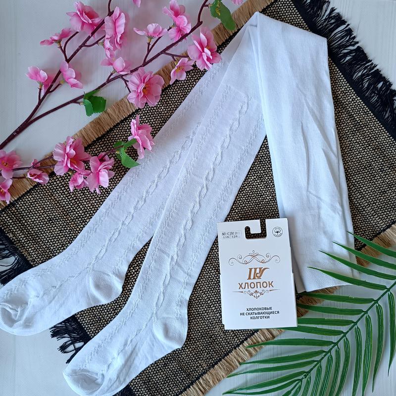 Білі колготи з узором від ТМ Шугуан Розмір бірки 116-128 ( 4 шт) Заміри: довжина загальна 82-83 см від п'ятки 70-71 см крок 45-46 см Склад: бавовна 82% поліамід 15.5% лайкра 2.5% Відправка щоденно будь якою транспортною компанією