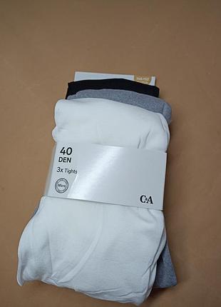 Нові дитячі капронові колготи, 40den. В упаковці 3шт різного кольору. В наявності: 122/128 - 1уп. 146/152 - 1уп. Від бренду C&A
