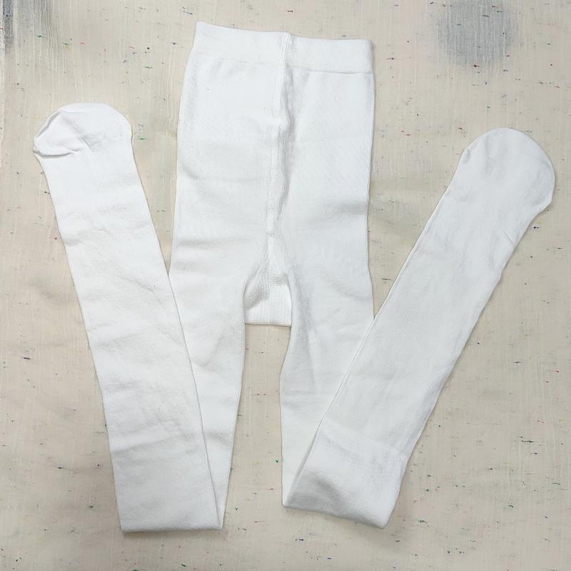Классные трикотажные колготы белого цвета Имеют одну полосу как сзади так и спереди, пятка не выделена, высокая посадка Очень классное качество Не утепленные