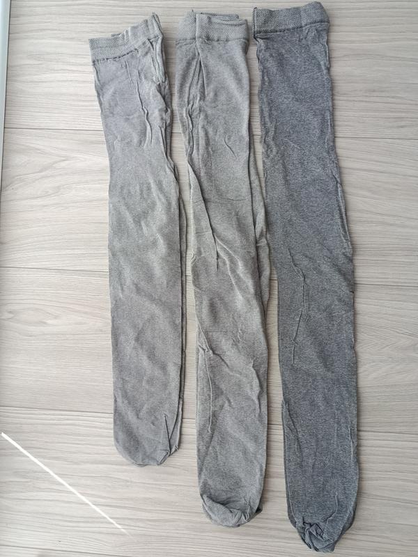 Ціна за три пари разом. Розмір приблизно від 122 до 140. Нові, в використаннв не були, на одних колготках є пляма, можливо є якісь затяжки непомітні.