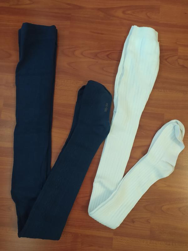 Колготки на дівчинку в ідеальному стані, одягали 1-2 рази. Сині довжина 98 см 152-164 Білі довжина 88 см 146- 152.