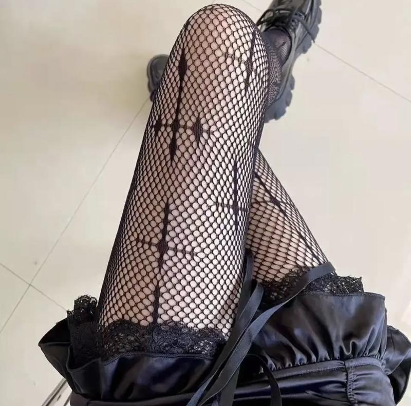 Колготки в сітку з хрестами жіночі колготи y2k готика