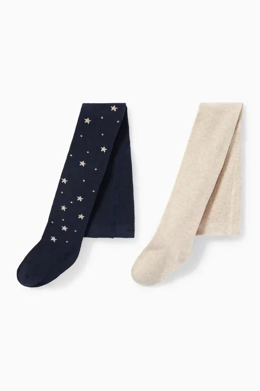 Набір дитячих бавовняних колготок 2 шт для дівчинки c&a комбіновані (25101859)