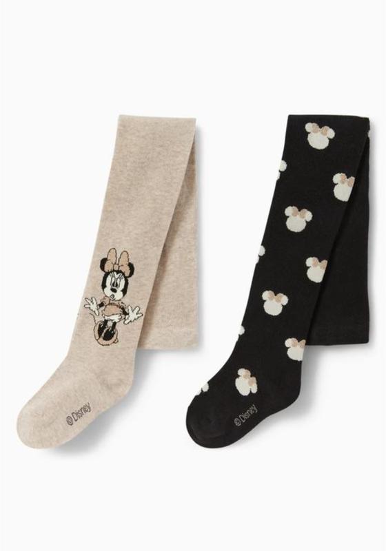 М'які тонков'язані колготки німецького бренду C&A з різними частково блискучими візерунками Мінні Маус з еластичним поясом. 📍Розмір 7-8р/ 122-128 см Колір: беж та чорні.