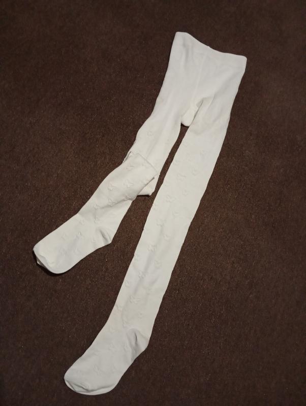 Колготки детские, теплые, белые, на 8-10 лет, на рост 134-140, рисунок бабочки.