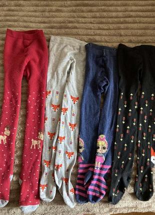 Колготи набором. 3 пари демісезонні, червоні з оленями махрові. Стан хороший, але є невелика кількість катишек. Підійдуть приблизно до 110 див. Повна довжина від 61 до 64 см, червоні 68 див. Відправка укрпоштою / Новою поштою / Міст. Обміну та повернення немає.