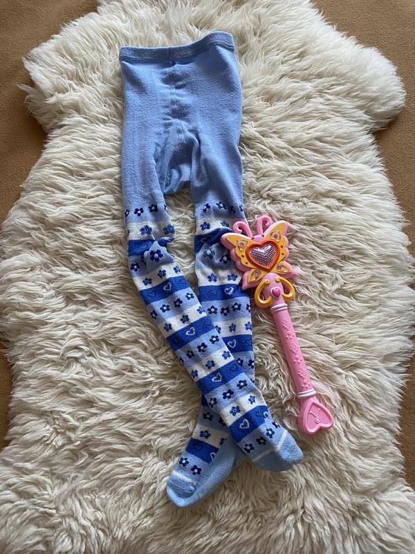 Гарні блакитні колготки для дівчинки. Підійде на 3-5 років/ Заміри на фото/ З нюансів-є сліди носіння,катишки та місцями плями і протертості тому ціна нижче,під одяг взимку підійде або для виступів до спідниці/сукні/ Продається без повернення.