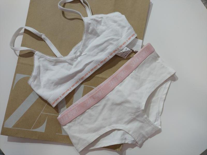 Топ, трусики Zara В наявності: Топ 9-10 років, трусики 8-9 років Склад: 95% бавовна · 5% еластан Підкладка 100% бавовна Колекція 2021 р.