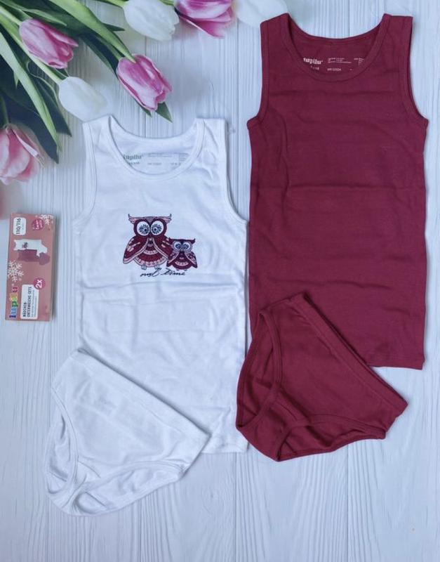Класний комплект білизни на дівчинку від Lupilu. 🍀Зріст 110-116см. В комплект входять 2-е трусиків і 2 маєчки. Ціна вказана за 1 комплект! Пишіть, відповідаю швидко📩. ✅Дивіться всі оголошення, є багато чого цікавого для діток!🥰 👕Можу зробити вибірку на потрібний вік!👗 📣І не забудьте підписатися на профіль😉, щоб бути в курсі новинок!🤩