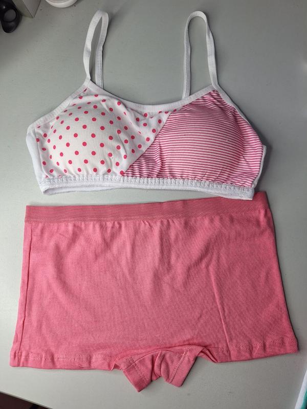 1 фото Дитячий білизняний комплект: бавовняний бюстгальтер зі з'ємними чашечками та бавовняні трусики. Бюстгальтер на 9-10, 10-12 років Трусики 9-10, 10-12 років. 179 грн комплект Дитячі бюстгальтери 130 грн/шт, всі 4 кольори - 400 грн