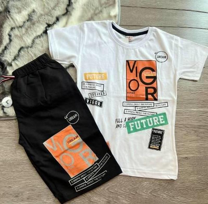 Розмірний ряд: 10-11 років, 146 ріст-футболка довжина 55 пог 38, шорти довжина 47, пояс 27/37 Комплект для хлопчиків Туреччина. Модель стильна, практична. Склад: 100% Cotton