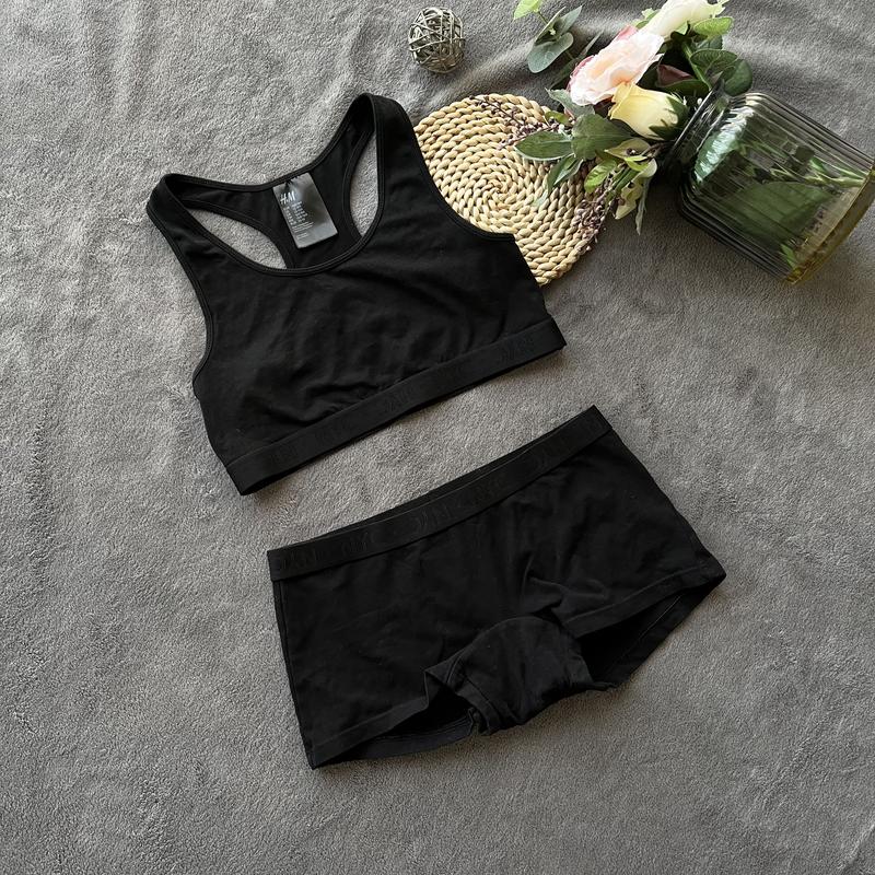 Н&М р. 164- 170 см Новий комплекс топ + трусики шорти чорного кольору, з бавовни Топ: Висота 27 см Ширина 30 см Трусики: Ширина 30 см Довжина 17 см (051146.061149)