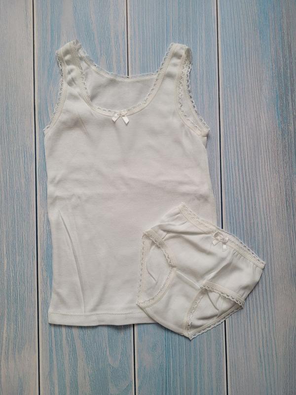 Бельеный комплект майка и трусики для девочки. Натуральная ткань, приятная на ощупь. В наличии размер: 68 (рост 104-110см) замеры: майка: ширина 26 см, длина 44 см; трусики: ширина: 24 см, длина: 19 см 64 (рост 98-104 см) замеры: майка: ширина 25 см, длина 40 см трусики: ширина: 19 см длина: 16 см 60 (рост 92-98 см) замеры: майка: ширина 23 см, длина 37 см; трусики: ширина: 18 см, длина: 15 см 52 (рост 81-86 см) замеры: майка: ширина 20 см, длина 33 см; трусики: ширина: 16 см, длина: 15 см Состав: 95% хлопок + 5% лайкра, пенье