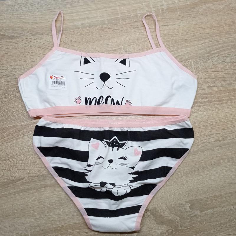 Дитяча білизна відмінної якості. Розмір за віком 12/13 , 14/15 . Виробник DONELLA, Туреччина. Моделі відшиті з якісної органічної бавовни. Анатомічно комфортні. Підліткові комплект топ і трусики для дівчаток з малюнком. Топ на тонких бретелях і трусики . Склад тканини: 95%бавовна, 5%еластан. Розміри та малюнки треба узгоджувати. Розмірну сітку відправлю в повідомленнях. Дивіться також інші мої об'єднання яви.