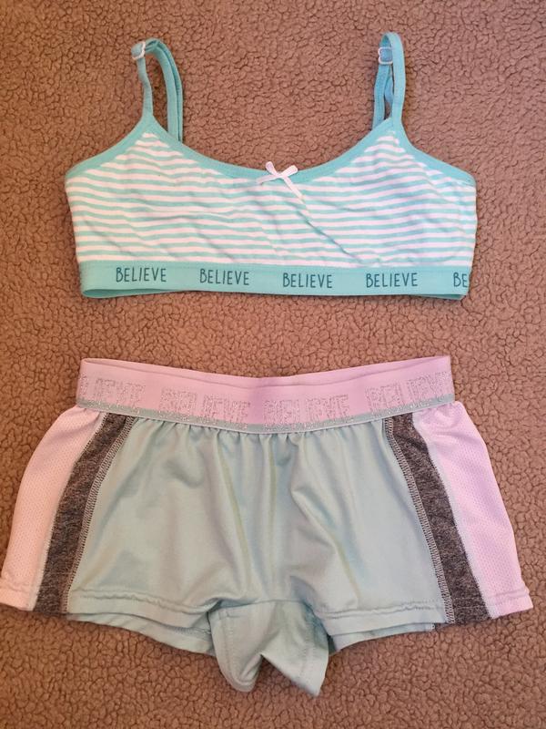 Верх на 10-11 років. Можна раніше. Бавовна. Висота без бретелей 12, шир 29 Низ на 12-13 років. Можна раніше. Поліестр. Висота 17, піт 25-35