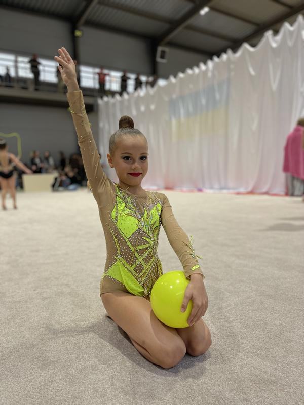 Яскравий купальник для виступів художня гімнастика довгий рукава лимонний колір