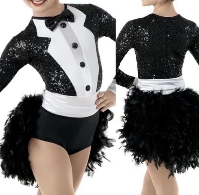 Танцювальний костюм Weissman чорний пір'яний костюм горжетка Broadway Baby Довжина від плеча до паху 66 см Талія 60-70 см Окремо можна придбати Циліндр 500 грн Рукавички 300 грн Маска 150 грн