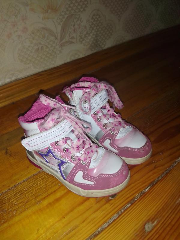 Дуже красиві та зручні кросівки на маленьку модницю близько 3 рочків. Застібається як липучкою, так і змієчкою збоку, шнурки прикрашені зірочками. Розмір вказано 25 виглядають досить гарно, з недоліків - трішки збиті спереду (видно на фото) та трішки розпущені шнурки, все решта в чудовому стані. ДОВЖИНА по устілці близько 16 см. ВіДАр - яскравий шопінг доступний кожному 🛍️! Рада бачити Вас у себе✋ - МІНІМАЛЬНА СУМА ЗАМОВЛЕННЯ 80 ГРИВЕНЬ! - Відправка протягом 1-5 днів 🚀 - Перед оформленням замовлення уточнюйте будь ласка наявність 😺 - Для постійних клієнтів є приємні бонуси 😻 ❗Перед покупкою уважно прочитайте опис товару та магазину, якщо залишилися питання пишіть, не соромтеся😘 Дякую за Ваш вибір, все буде Україна 🙏🇺🇦