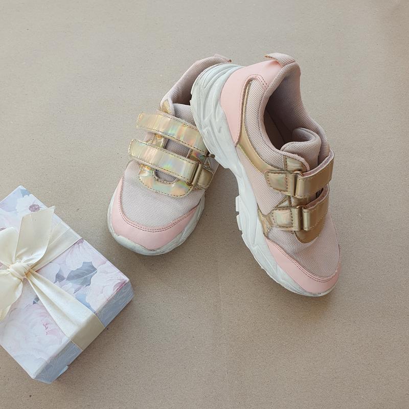 Наші легесенькі кросівки, носили весною і влітку. Зручні і головне легенькі. липучки гарно тримають, подошва як в скетчерспх піна. Стан ідеальний як на фото. Практичні, легко миються і подошва теж, навіть вологими серветками. Липучки переливаються як перламутрові