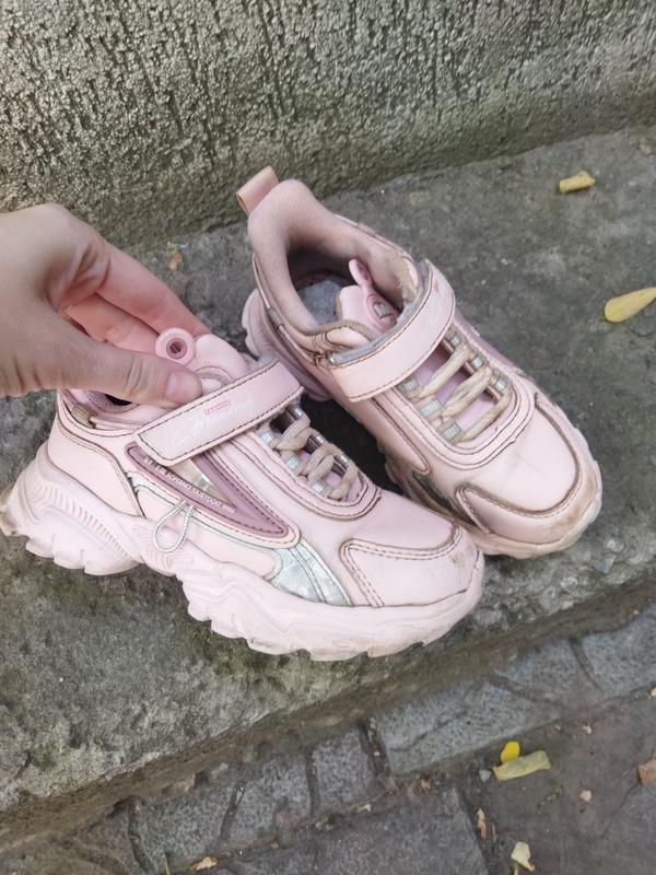 Ніжно рожеві кросівки 30 розміру. В хорошому стані,трохи збиті носки. Заміри устілки на фото. Пересилаю