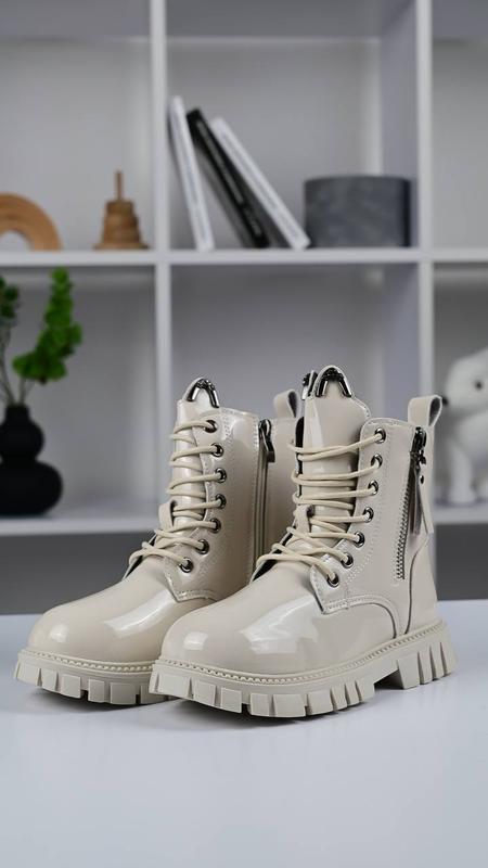 матеріал екошкіра лак , в середині є утеплення, коротше хутро штучне, відмінно на ранню весну, демісезон. Матеріал водонепроникний 👍 розмір в асортименті розпродаж 🔥 розмір 33-19,5 см розмір 34- 20 см розмір 35-21 см розмір 36-21,5 см( 2 пари) розмір 37-21,7 см