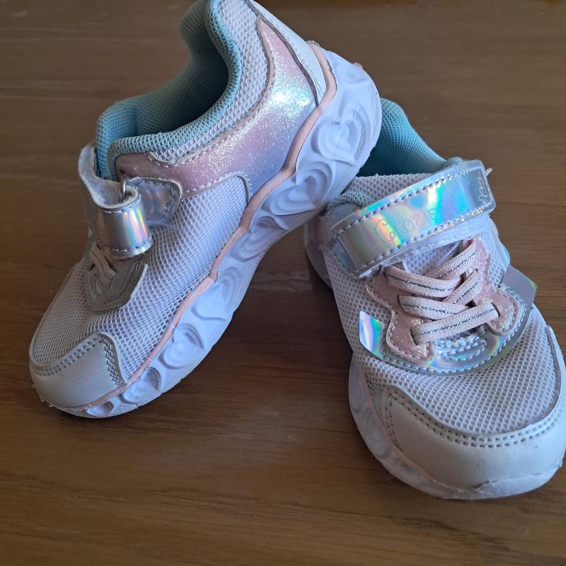 Розмір 25. Маломірить трішки. Довжина устілки 16см. Підошва світилася кольоровими ліхтариками. Зараз НЕ СВІТЯТЬСЯ - сіли батарейки. Решту стан ідеальний. Носили мало, бо швидко виросла ніжка.