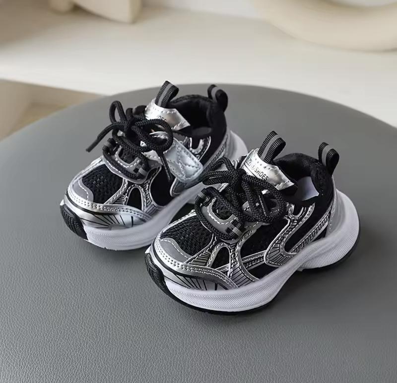 Стильні та комфортні кросівки на дівчинку , чорні з серебром.Розмір 24 (15 см) .