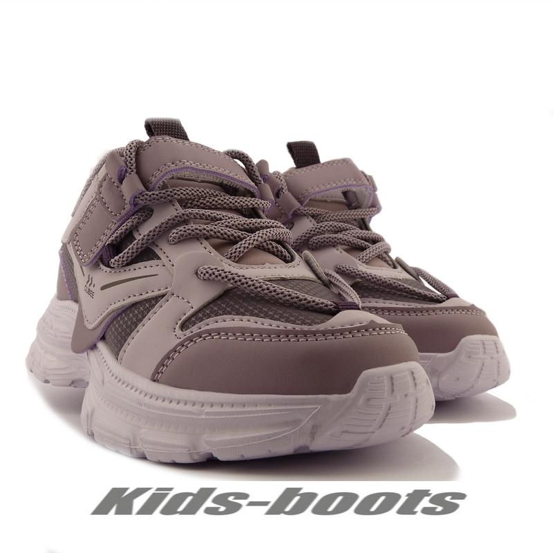 Кросівки виготовлені з штучної шкіри та текстилю. Основний колір верху- світло-бузковий. Матеріал підкладки - текстиль бузкового кольору. Устілка - анатомічна, з натуральної шкіри білого кольору з супінатором. Мають надзвичайно легку, гнучку та пружню підошву. Застібка - липучка та шнурки, призначені для дитячої ноги любої повноти та висоти підйому стопи. Розміри; взуття / устілки, - 32/20,7cm; 33/21,5cm; 34/22cm; 35/23cm; 36/23,5cm; 37/24cm.