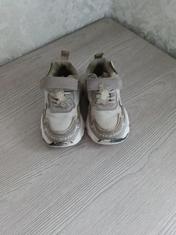 Кросівки на дівчинку.Стан дуже хороший.Розмір 26.Устілка всередині 16см.Колір бежевий з білою підошвою.Легкв та зручні,фіксуються липучкою що дуже зручно для дітей.Підійдуть як для прогулянок так і для садочку.