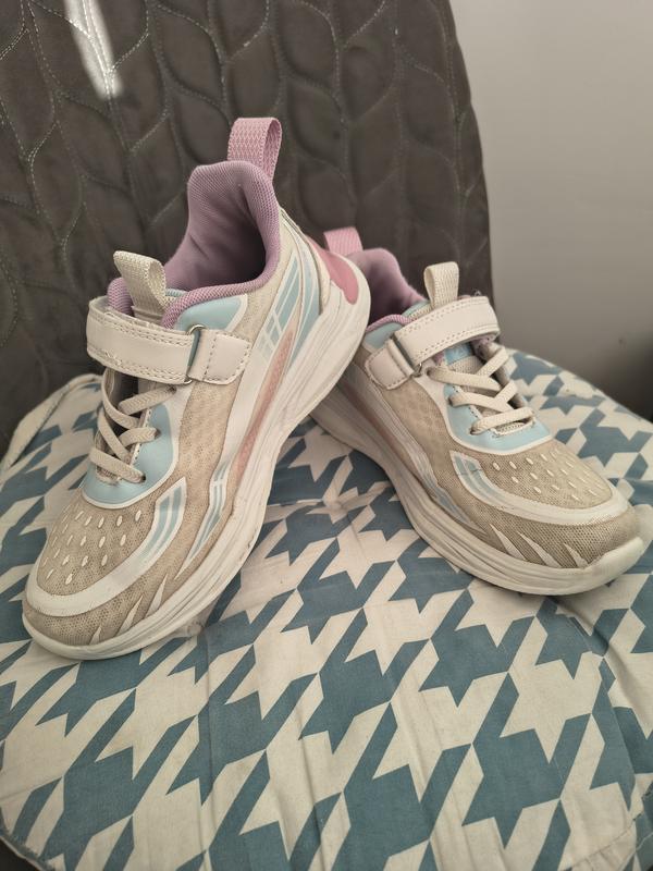 Світлі кросівки для дівчинки. Устілка 22 см. З дефектів: протертість на дипучках ( на фото показала) не впливає на функціонування липучок, все добре тримає, при носінні не помітно взагалі.