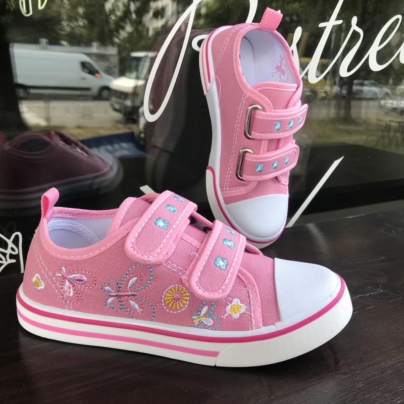 Легенькі текстильні кеди для дівчат! На ніжці сидять обережно, регулюються липучками! Устілка текстиль. Розміри: 29-18,5см 30-19см 2 пари